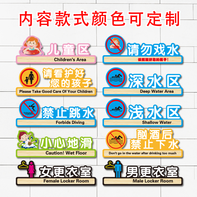 亚克力游泳馆提示牌禁止跳水深水浅水区小心地滑严禁潜水酗酒后请勿下水公共场所文明游泳警示牌标示牌定制