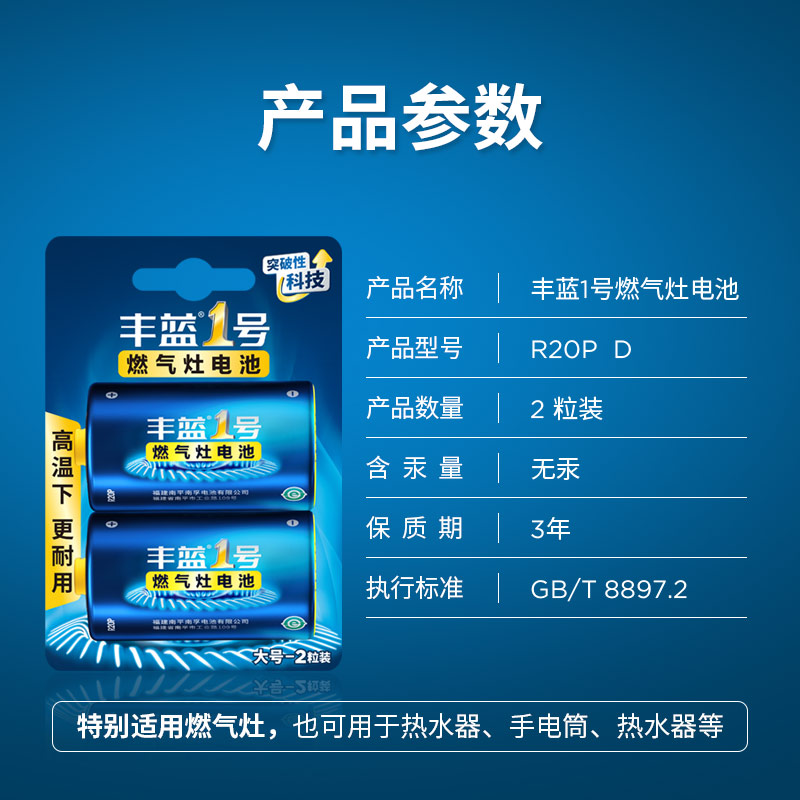 南孚丰蓝1号干电池燃气灶大号热水器r20一号碳性d型1.5v煤气炉碱性煤气灶收录机电池打火无汞不漏液生产