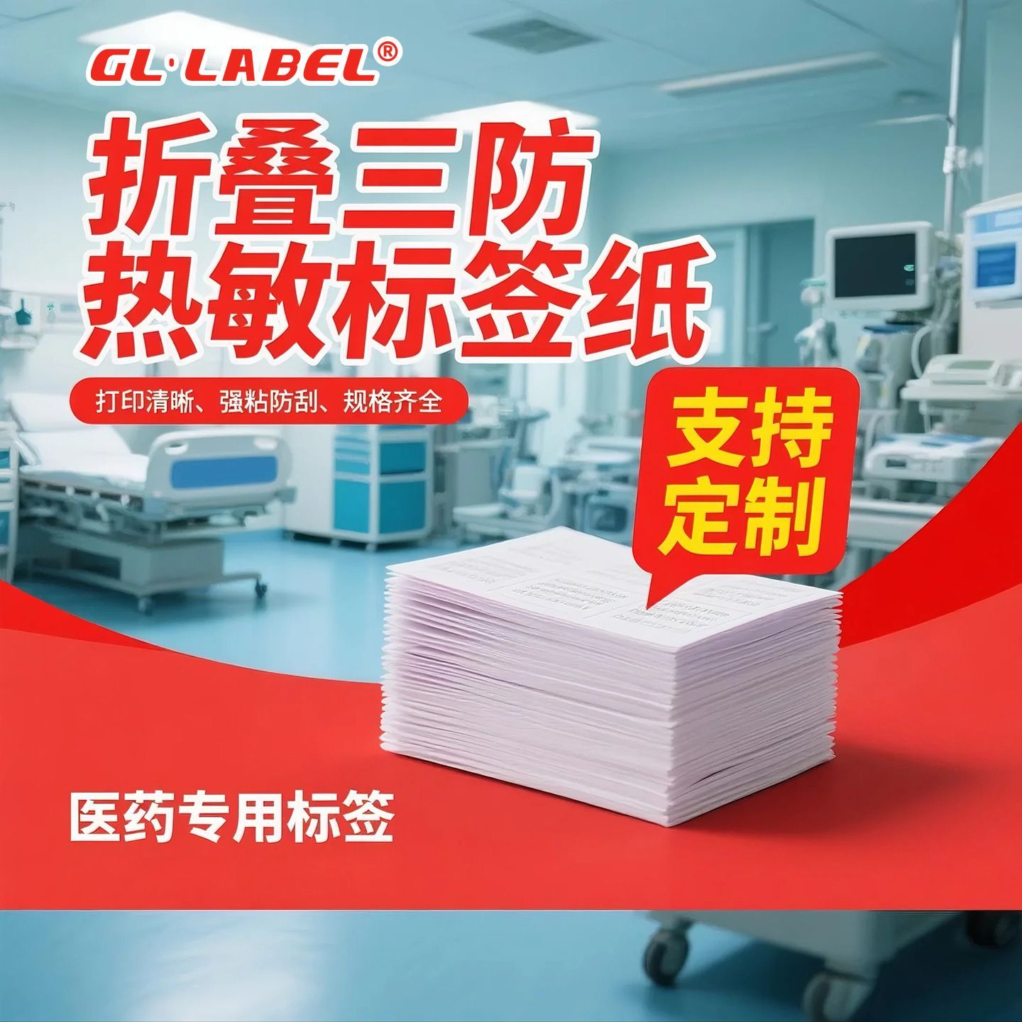 折叠三防热敏标签医药店医嘱处方贴40x30 50x30 60x40不干胶标签