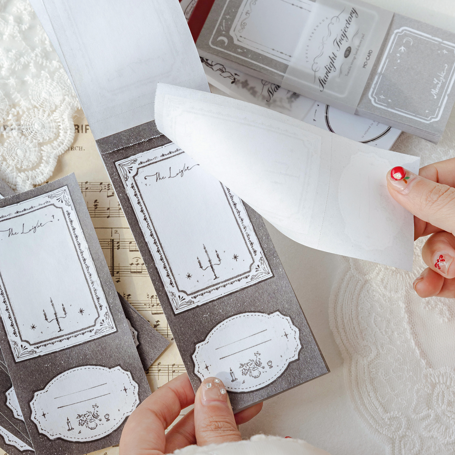 18张分装 陌墨 托斯卡小夜曲系列轻复古边框可撕手账素材无粘便签