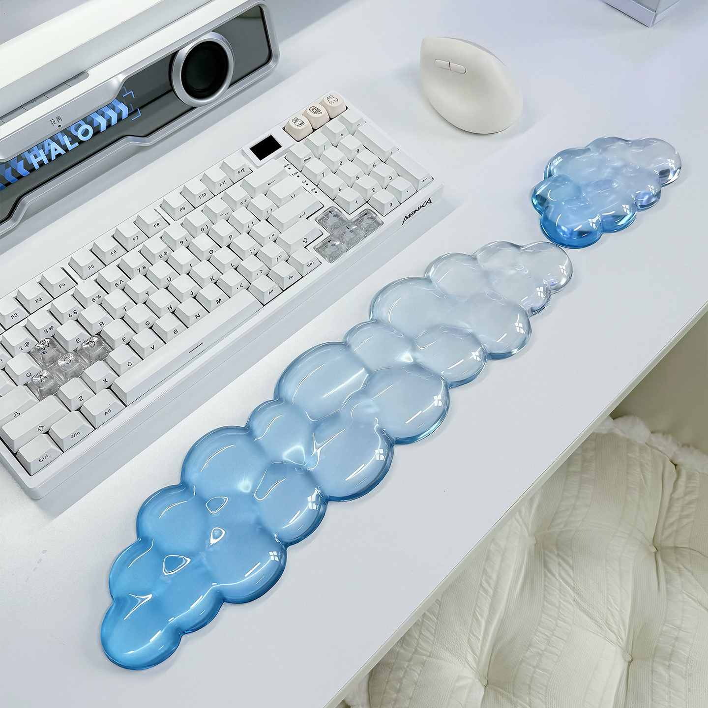 四季绿渐变鼠标垫子护腕键盘手托透明云朵硅胶防滑桌面电脑键盘垫