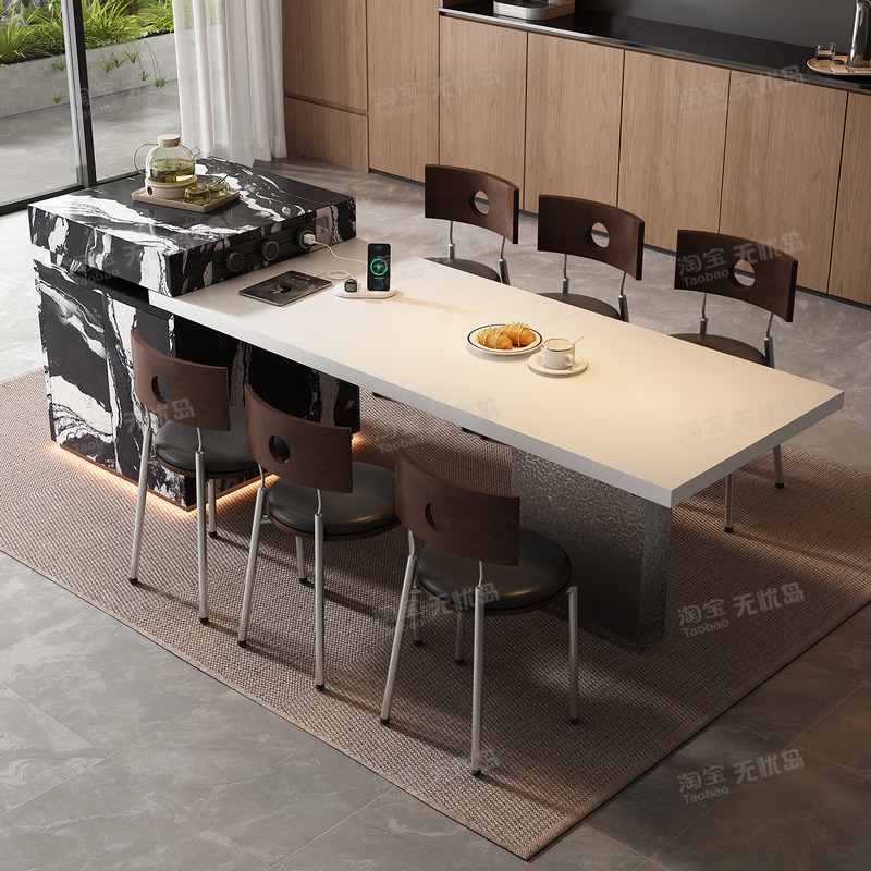 佛山设计师岛台餐桌一体家用可伸缩定制中导台厨房黑白亚克力倒台