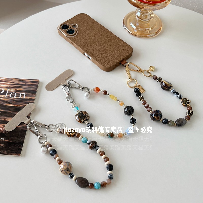复古艺术设计手机链不规则石头高级感挂链手工串珠小众轻奢手腕挂绳挂饰链条包包链子防丢钥匙扣挂件女垫片壳
