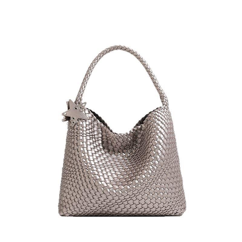 设计香槟色编织托特包女2025新款大容量水桶包通勤手提单肩