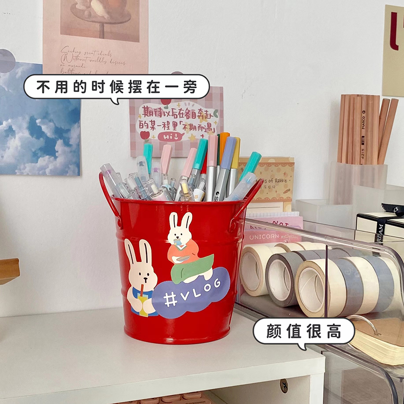 可爱笔筒大容量学生桌面收纳盒女孩办公室儿童轻奢高级感创意摆件