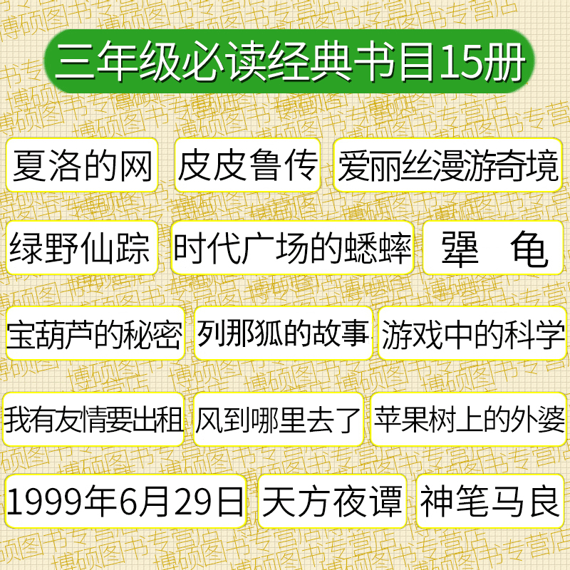 三年级必读15册夏洛的网皮皮鲁传爱丽丝漫游奇境记绿野仙踪时代广场的蟋蟀游戏中的科学普雷斯1999年6月29日犟龟绘本天方夜谭
