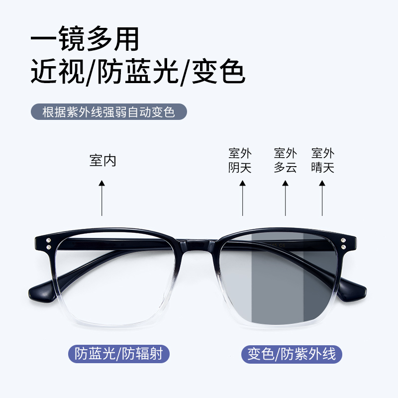 陈泽同款感光变色眼镜男款黑框防蓝光抗辐射近视男潮平光镜无度数