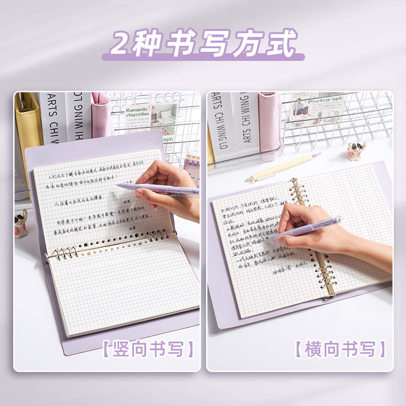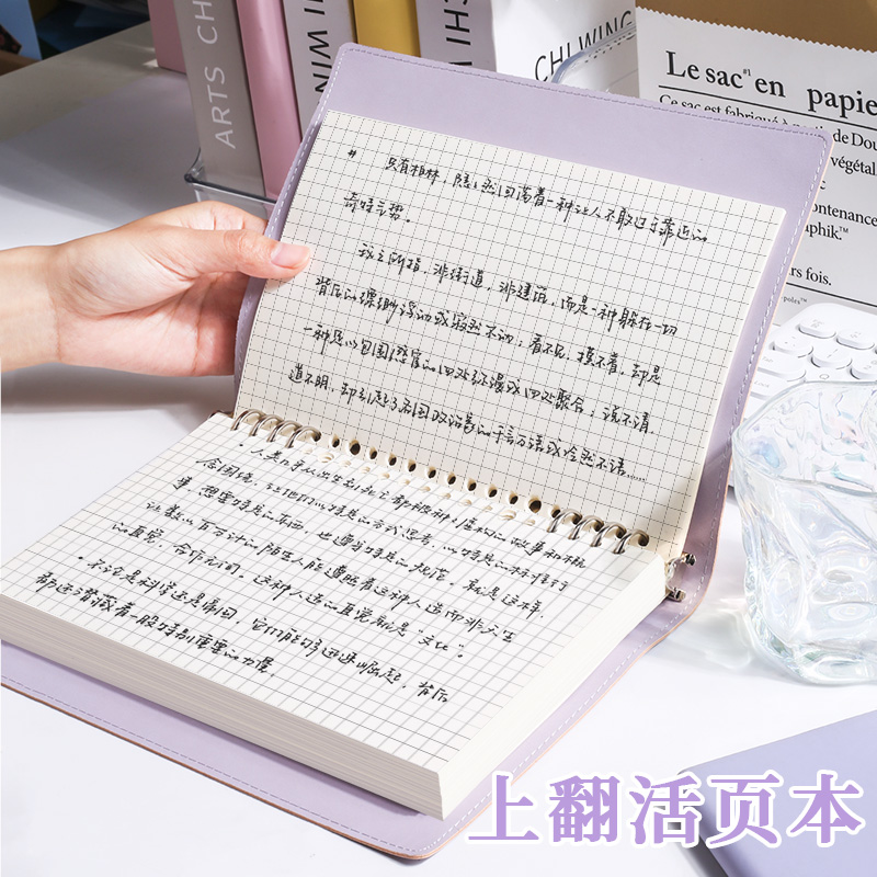上翻活页笔记本可拆卸方格本网格本子高颜值初中生专用高中格子小方格方形本复古考研加厚2025新款文具草稿纸