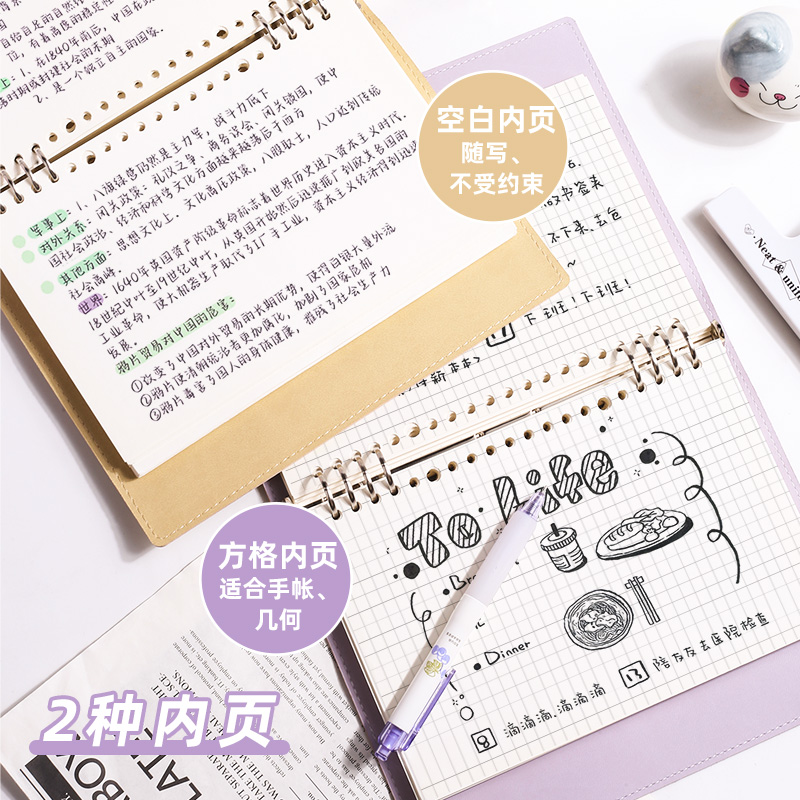 高颜值简约B5软皮面外壳上翻活页本可拆卸加厚思维导图专用笔记本本子A5空白方格手帐本大学生考研学习记事本