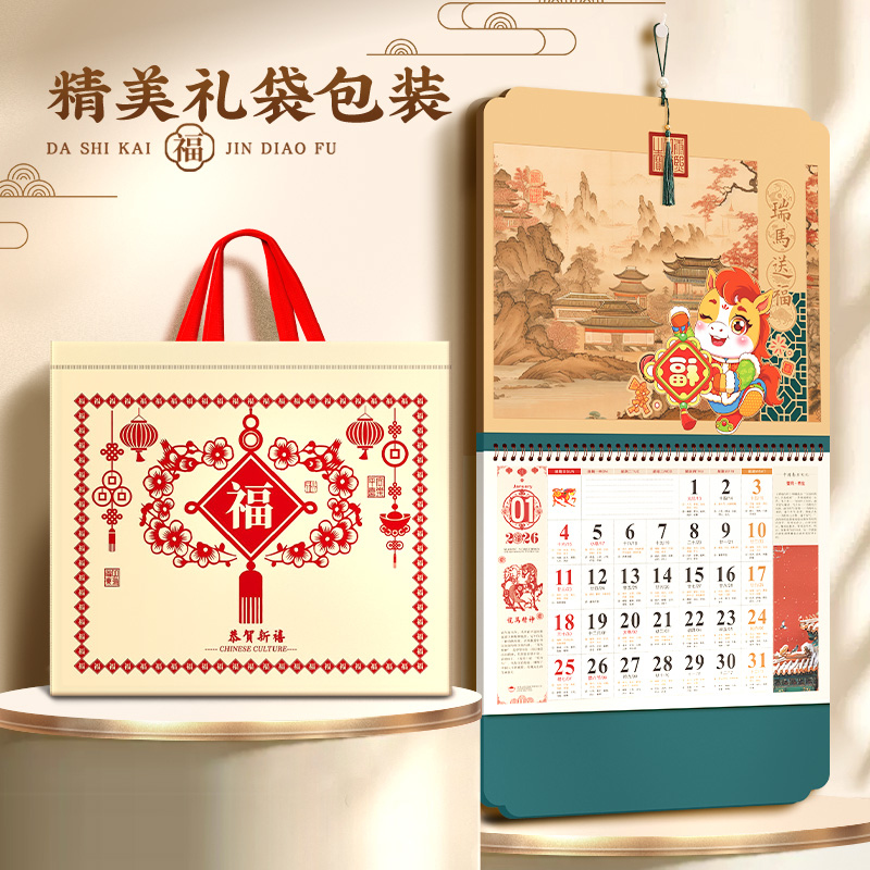 大号新款2026年挂历家用挂墙挂式日历中国风古风礼品月历2025新款马年黄历万年历故宫手撕日历定制老皇历挂历