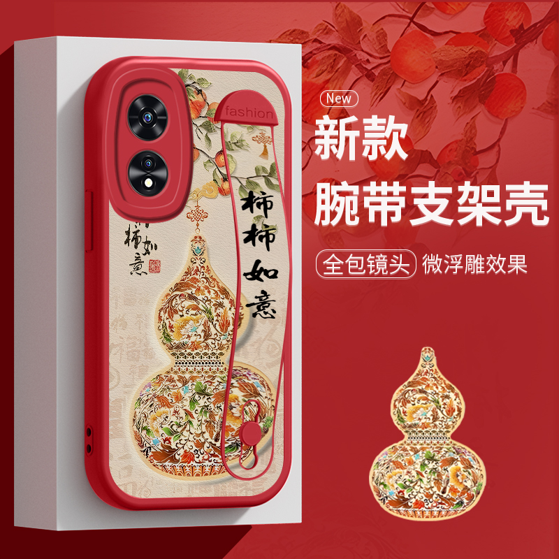 金丝宝葫芦适用oppoa97手机壳a96新款a95小羊皮a93腕带a93s支架a92s全包OPPO硅胶防摔女高级国风艺术保护软套