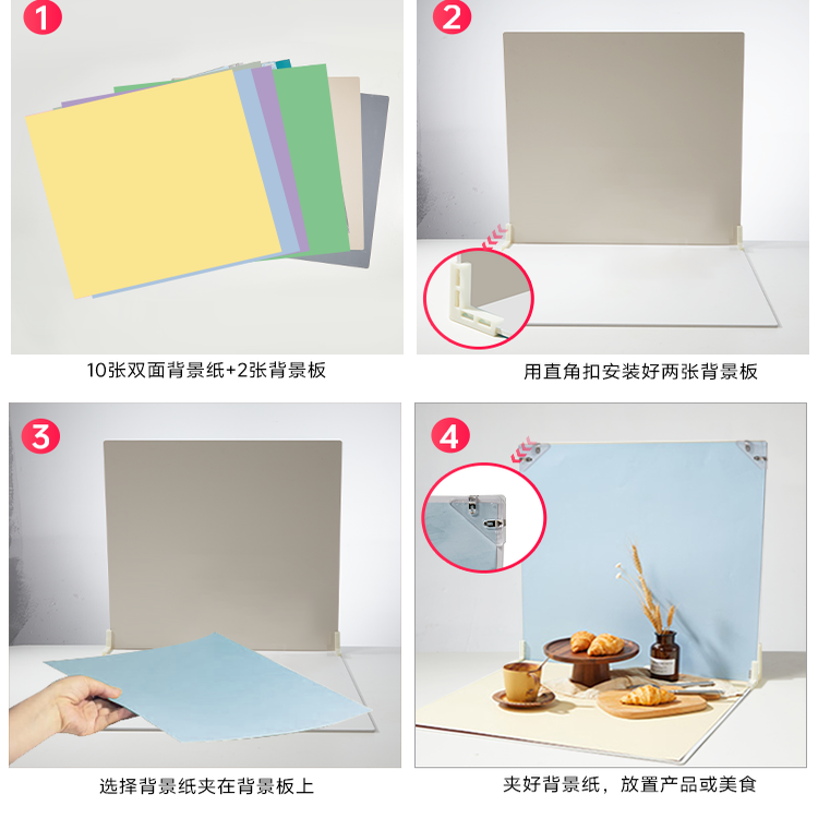白色拍照背景板PVC摄影手办乐高模型咖啡背景板美食直播间ins风 造景高级感氛围装饰静物场景满月拍摄道具