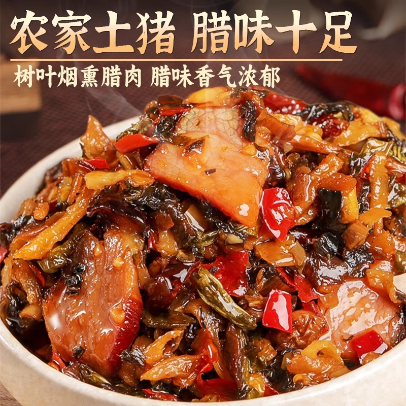 正宗湘西外婆菜腊肉下饭菜湖南特产烟熏瘦肉开胃咸菜拌饭瓶装即食