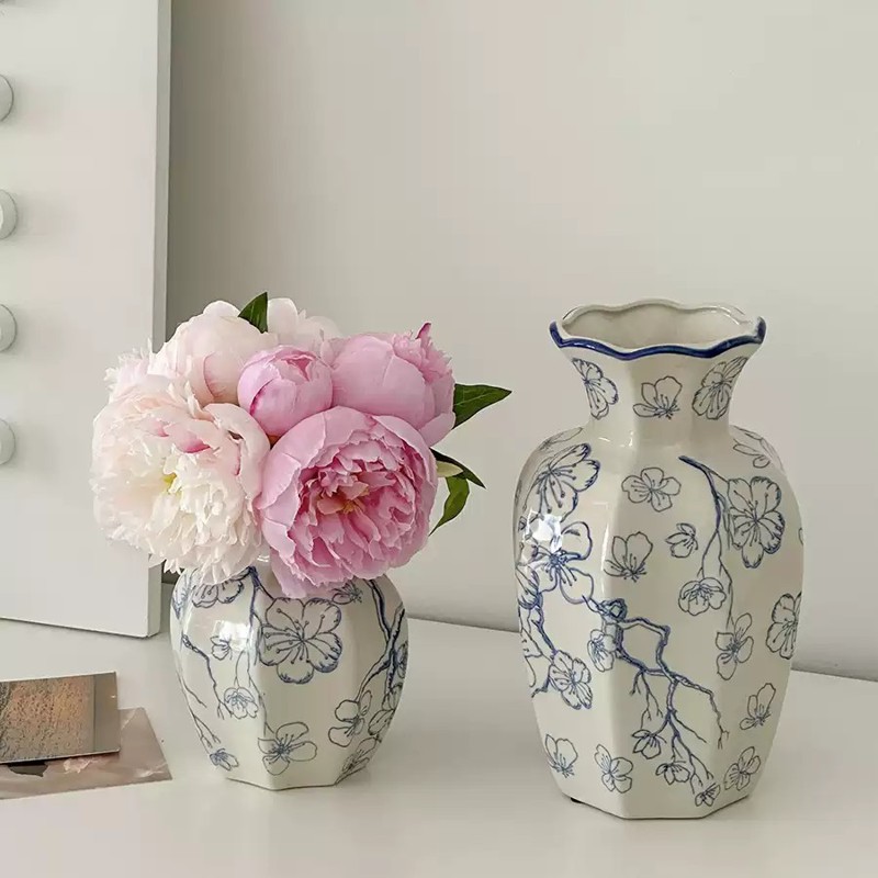 新中式中古青花瓷复古花瓶陶瓷鲜花插花客厅装饰品摆件花器电视柜