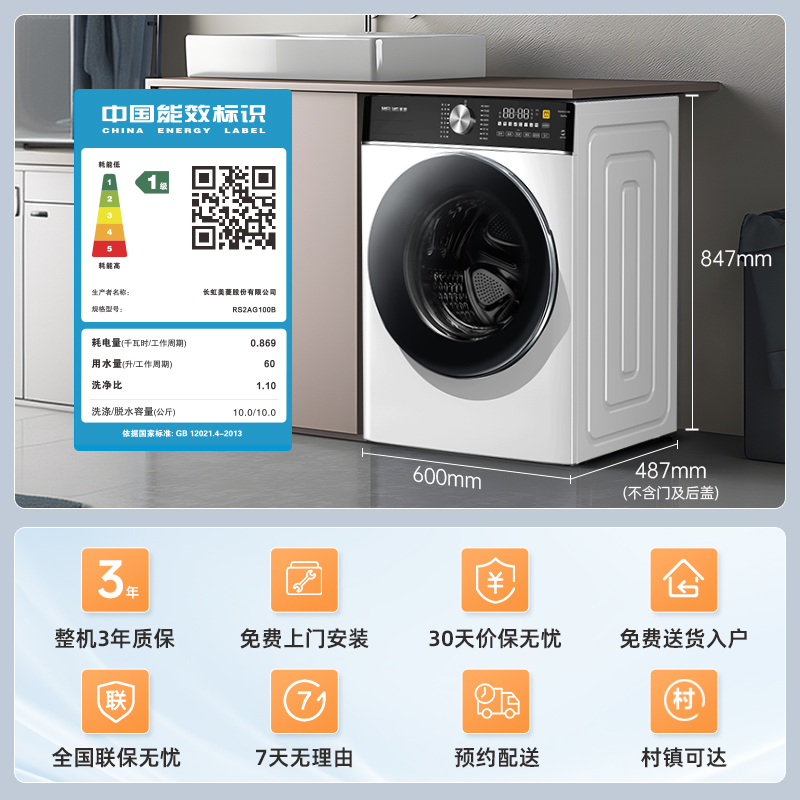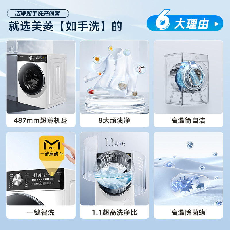 美菱如手洗10KG滚筒洗衣机全自动家用大容量洗脱一体换新补贴20%