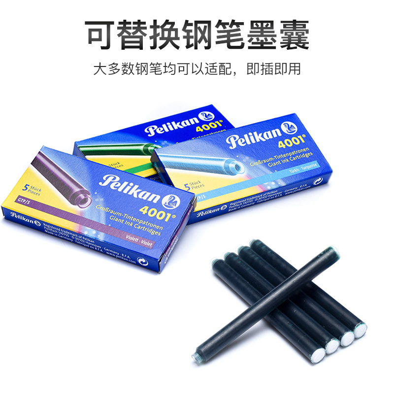 Pelikan百利金墨胆 德国进口非碳素染料4001长墨囊可替换墨水胆不堵笔