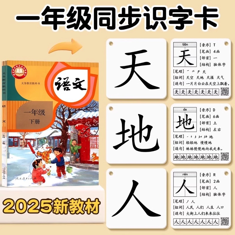 一年级识字卡片认字小学生上册人教版幼小衔接识字卡汉字拼音新版
