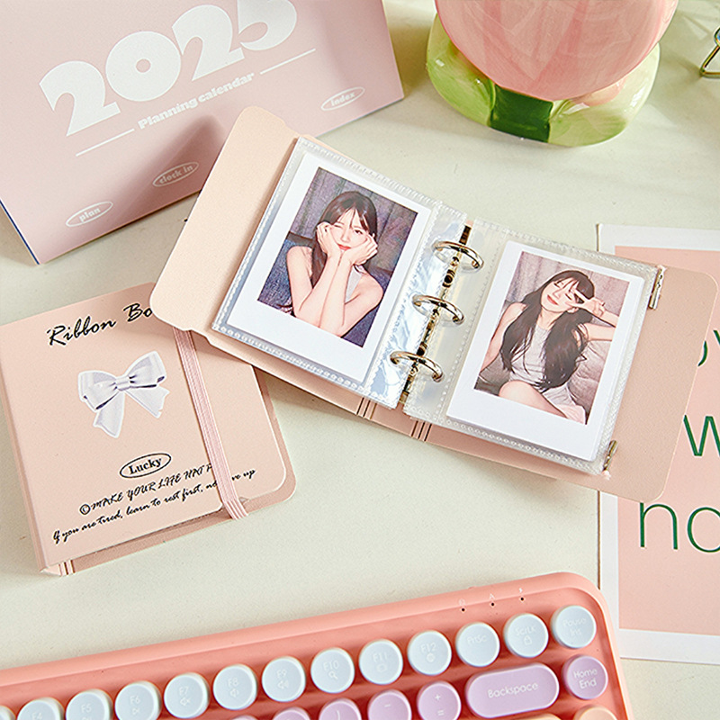 黑粉蝴蝶结一宫格卡册少女高颜值粉色发泡绷带迷你相册拍立得收纳