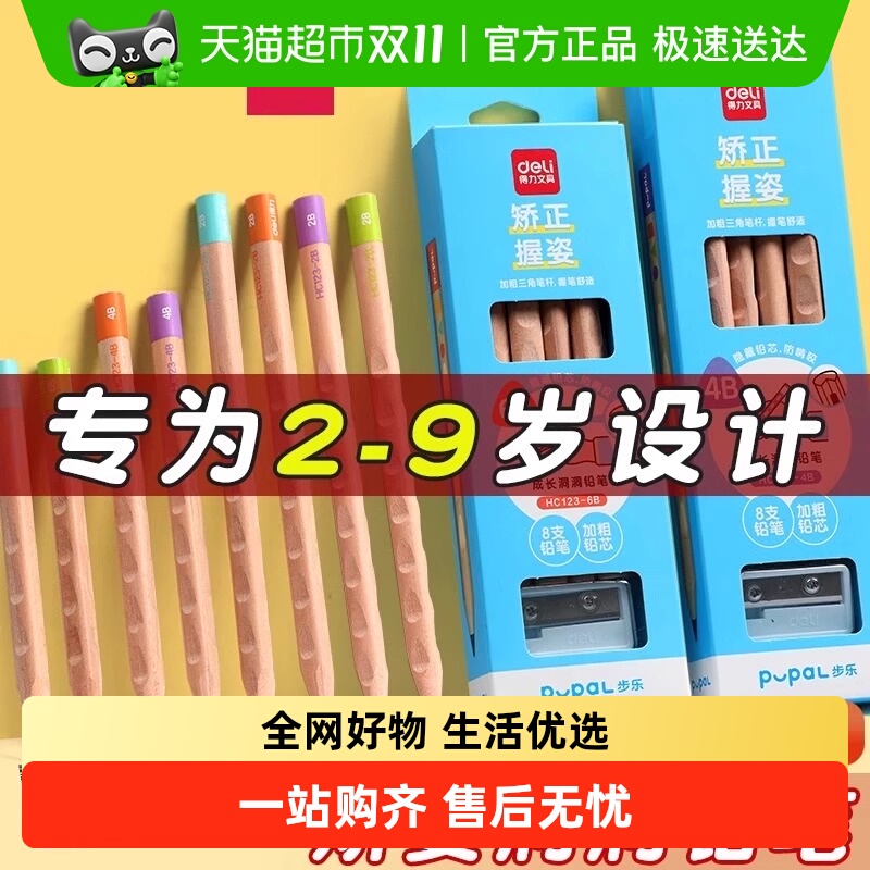 得力原木加粗洞洞铅笔幼儿园初学者儿童无毒一年级小学生专用加粗