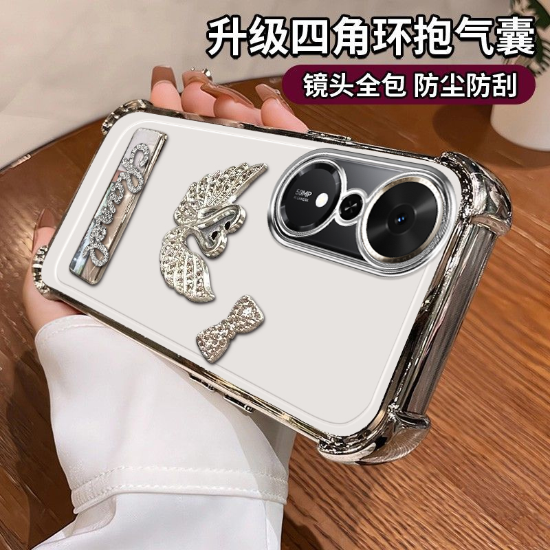 适用畅玩70plus手机壳闪钻天鹅电镀四角防摔荣耀简约硅胶气囊全包闪钻字母电镀支架保护套