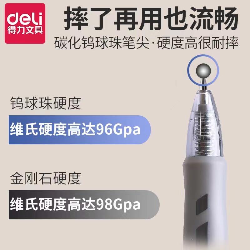 得力S08按动中性笔0.5mm学生考试碳素黑色按压速干医生处方签字笔