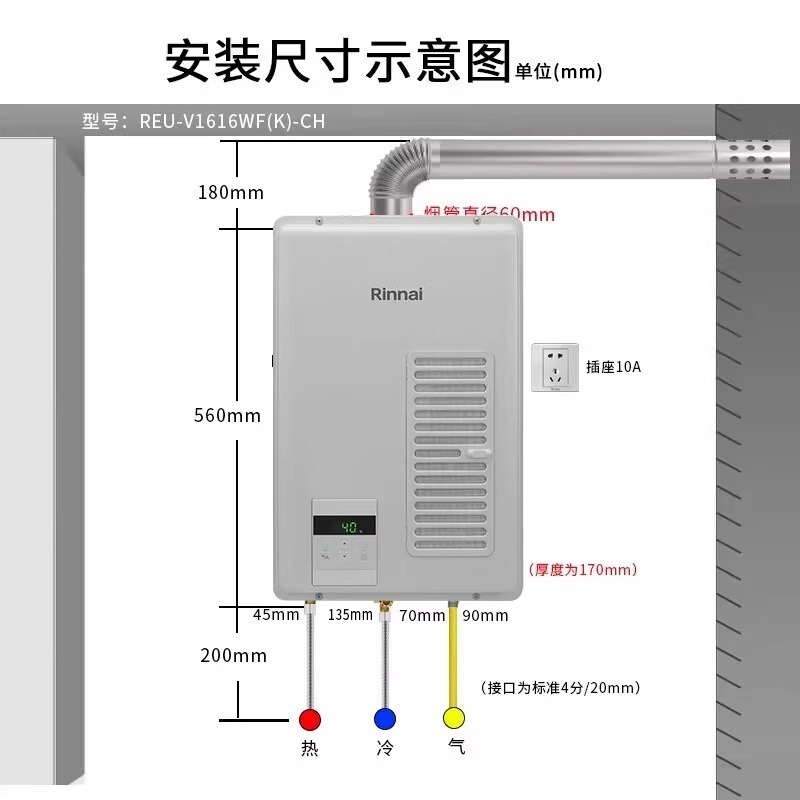 林内日本原装进口强排式燃气热水器水量伺服器智能恒温V1616WF(K)