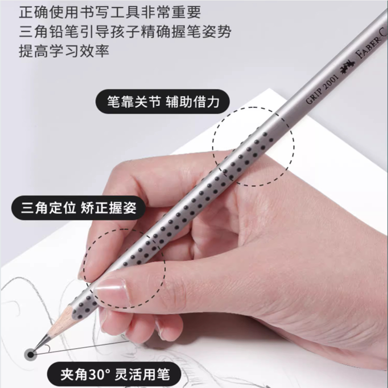 德国辉柏嘉三角特点铅笔学生书写铅笔HB2B考试铅笔小学生铅笔幼儿园写字笔练字铅笔儿童三角杆点阵铅笔