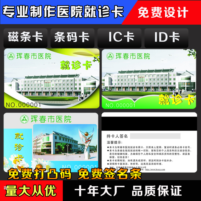 门诊就诊卡ic、ID卡定制 人民医院感应卡高抗磁条卡诊疗卡制作