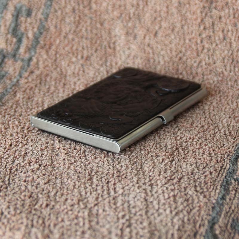便携超标檀木浮雕貔貅不锈钢名片盒银行卡收纳盒可定制文字收纳盒