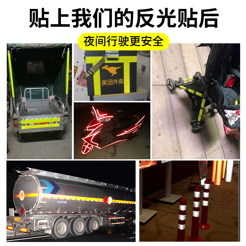 5cm10cm黑黄红白反光膜警示胶带地贴条防水安全标识贴纸反光贴