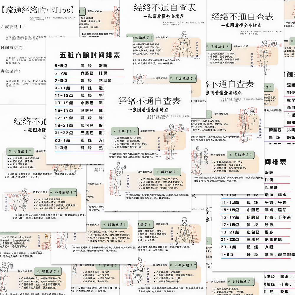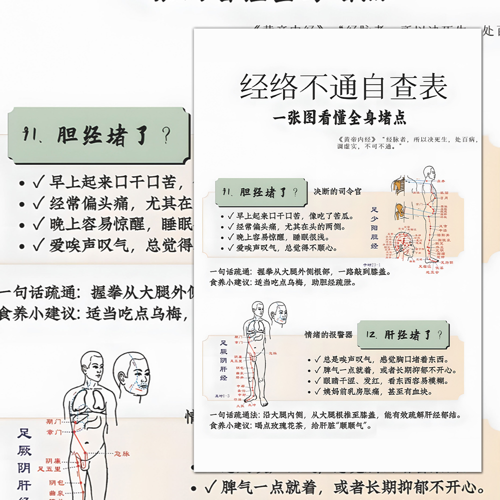 经络不通自查表】中医养生十二经脉循行经络按摩疏通知识科普贴纸