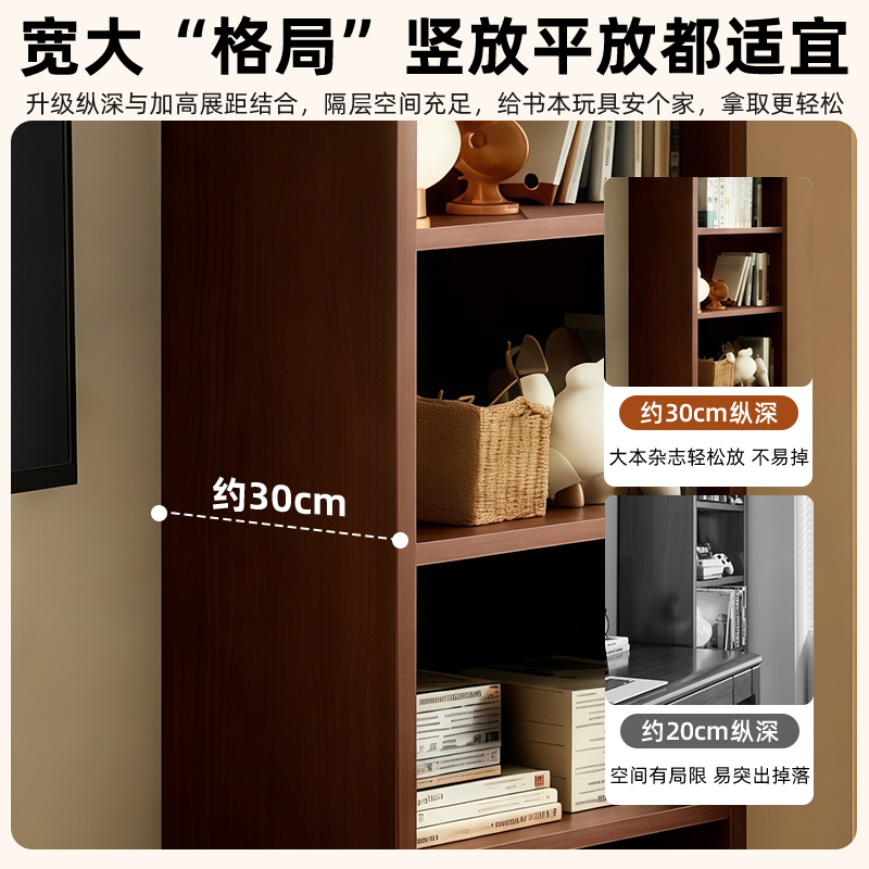实木书柜电视柜旁收纳柜客厅靠墙一体储物柜落地置物书架角落窄柜