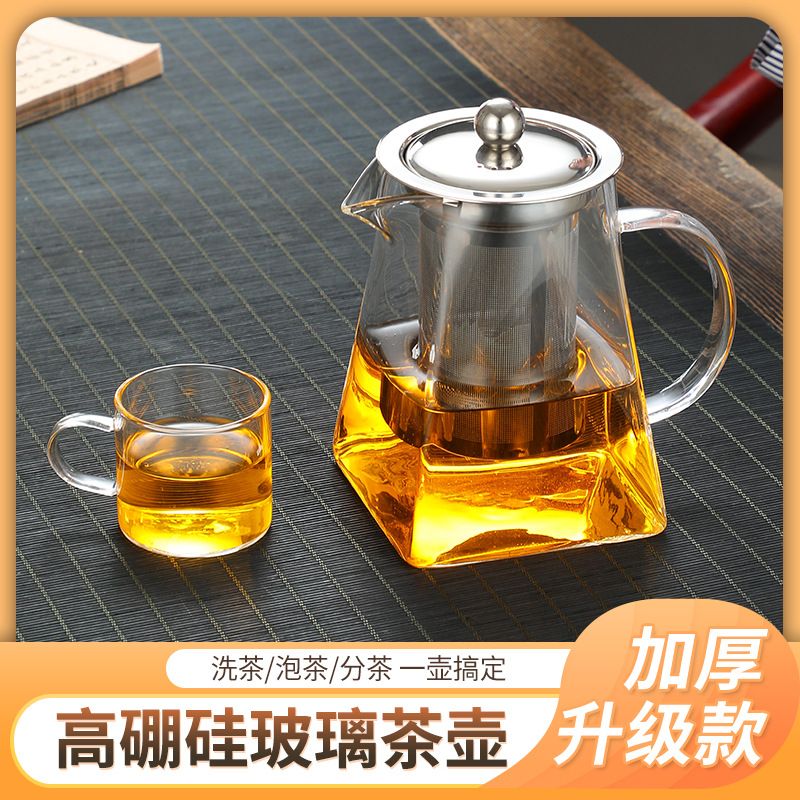 透明天圆地方泡茶壶高硼硅耐热玻璃不锈钢过滤内胆四方煮茶滤网