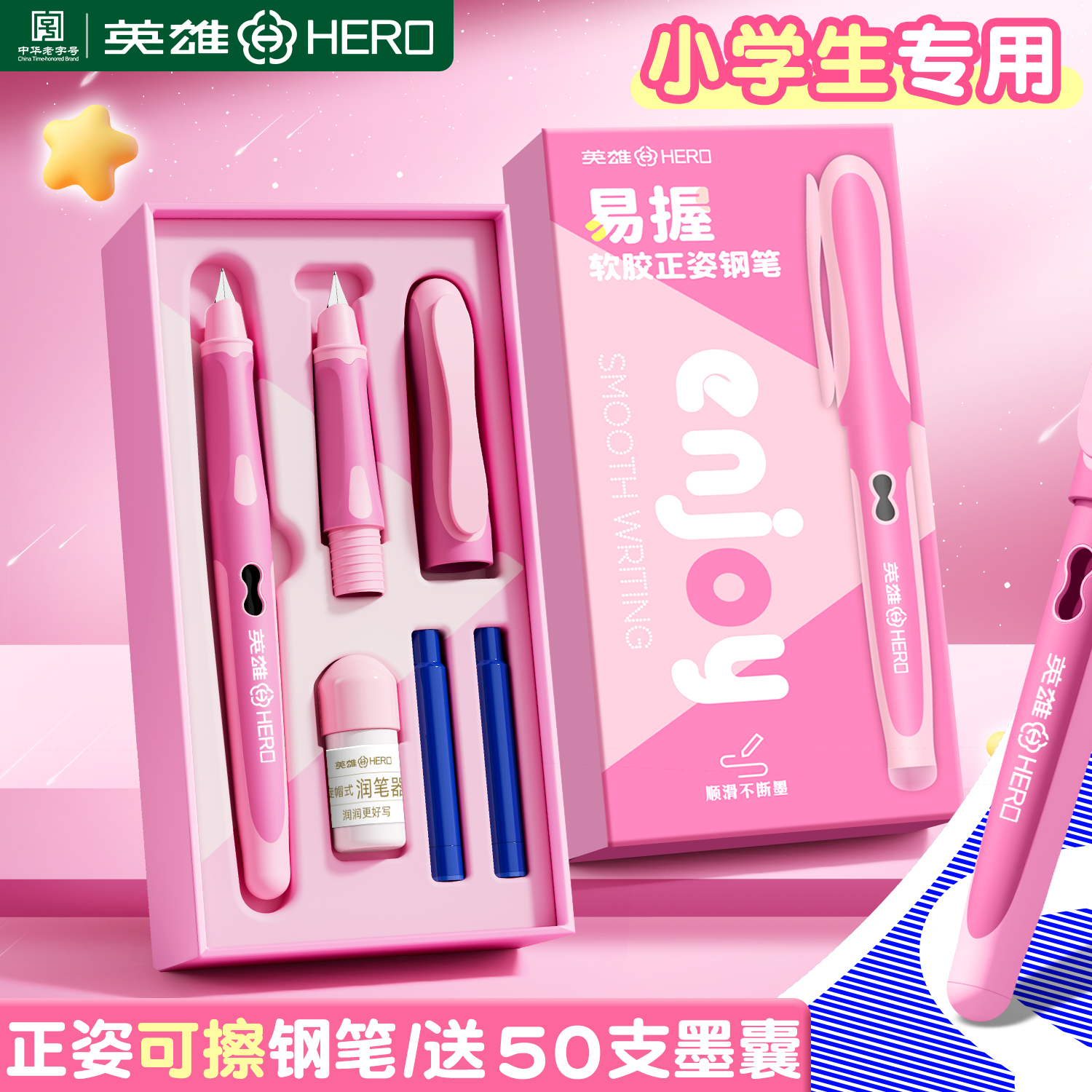 英雄牌可擦钢笔三年级小学生专用练字儿童热敏可擦钢笔可替换墨囊橡皮可擦的礼盒钢笔四年级专用官方正品