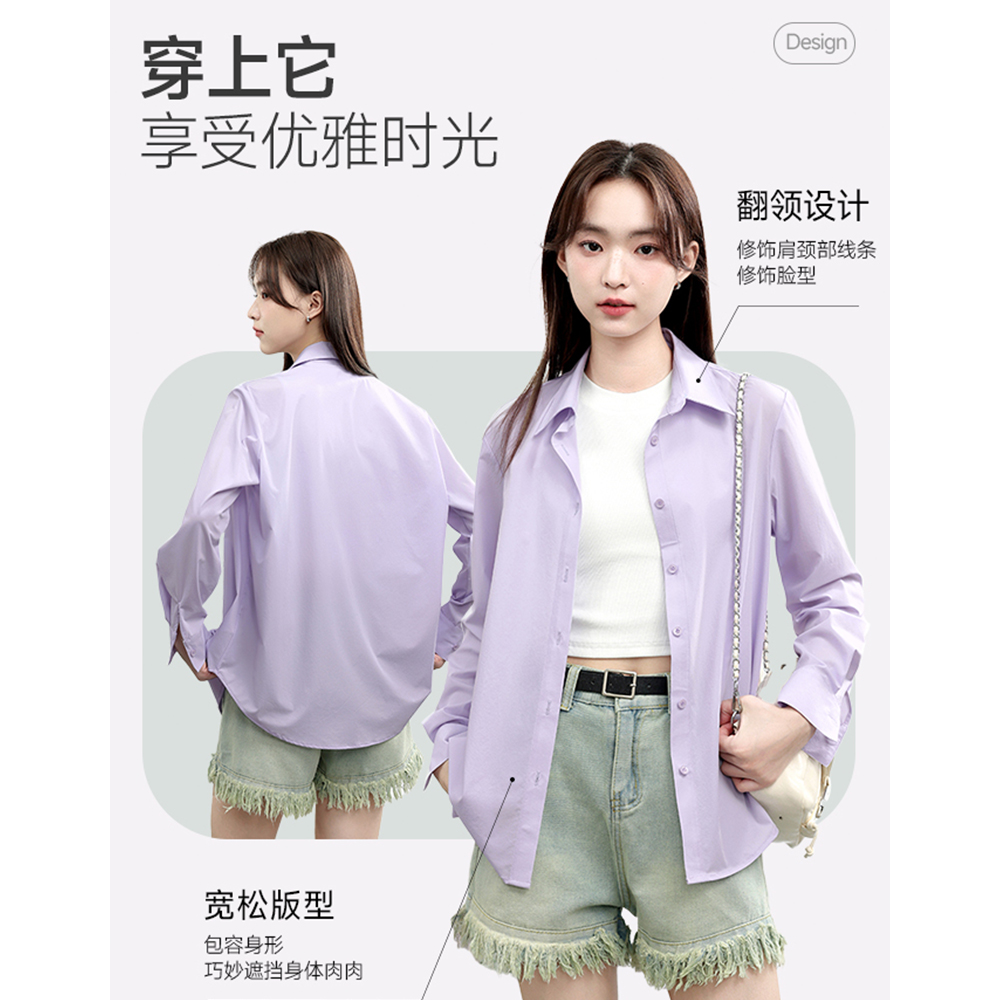 KV真维斯UPF50+防晒衬衣女浅紫有骨感时尚百搭清凉透气显瘦上衣女