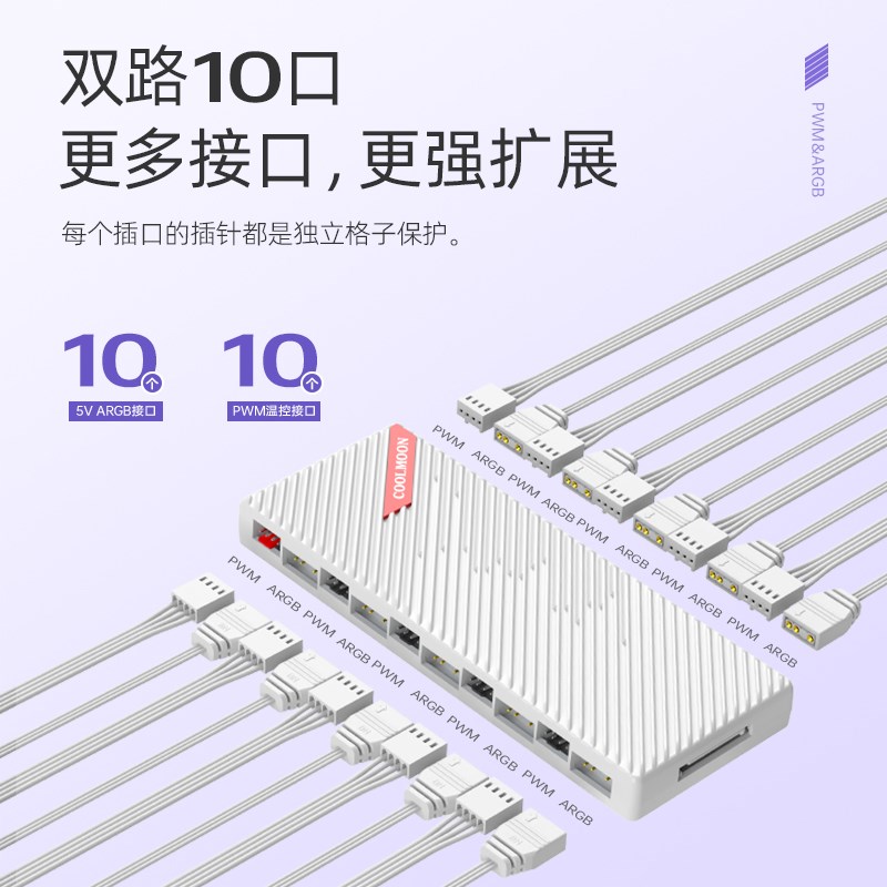 二合一温控ARGBk一分十分线器机箱风扇5V3针PWM双10口风扇集线器