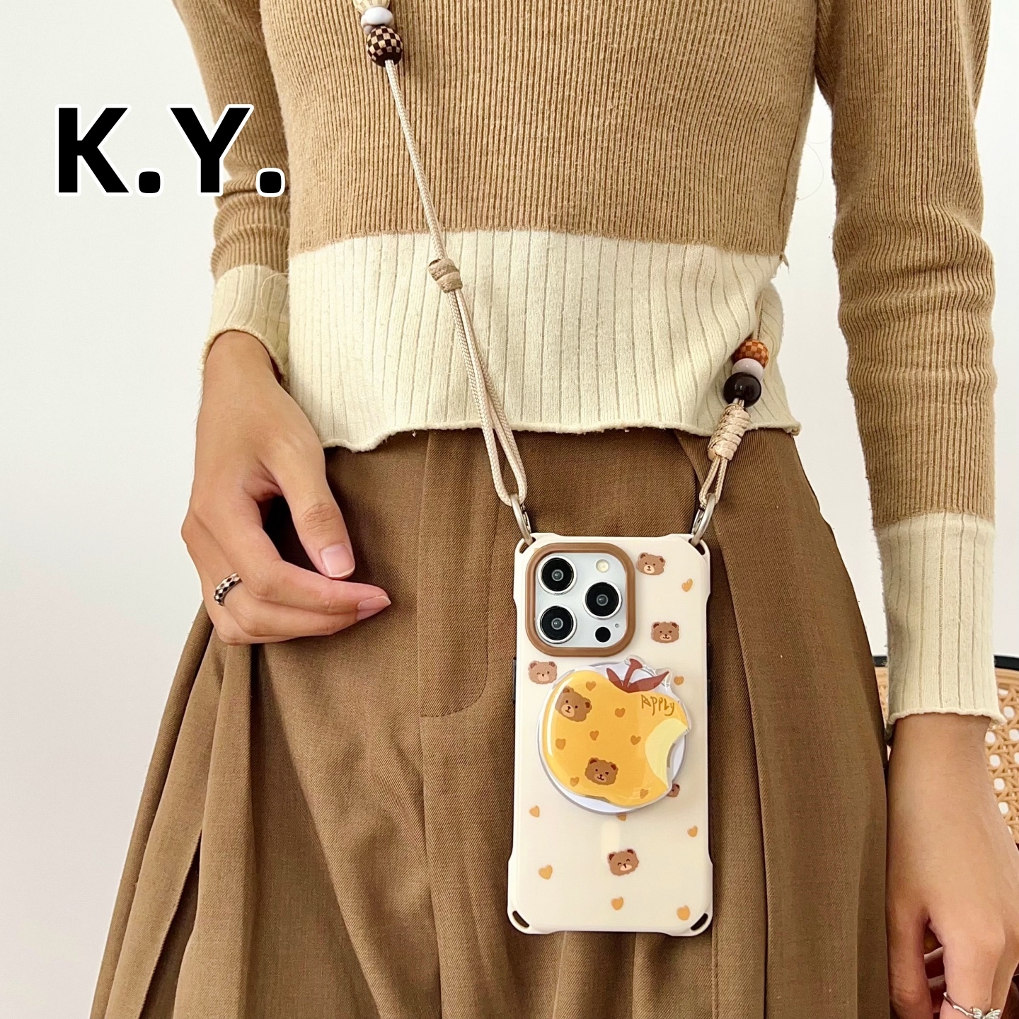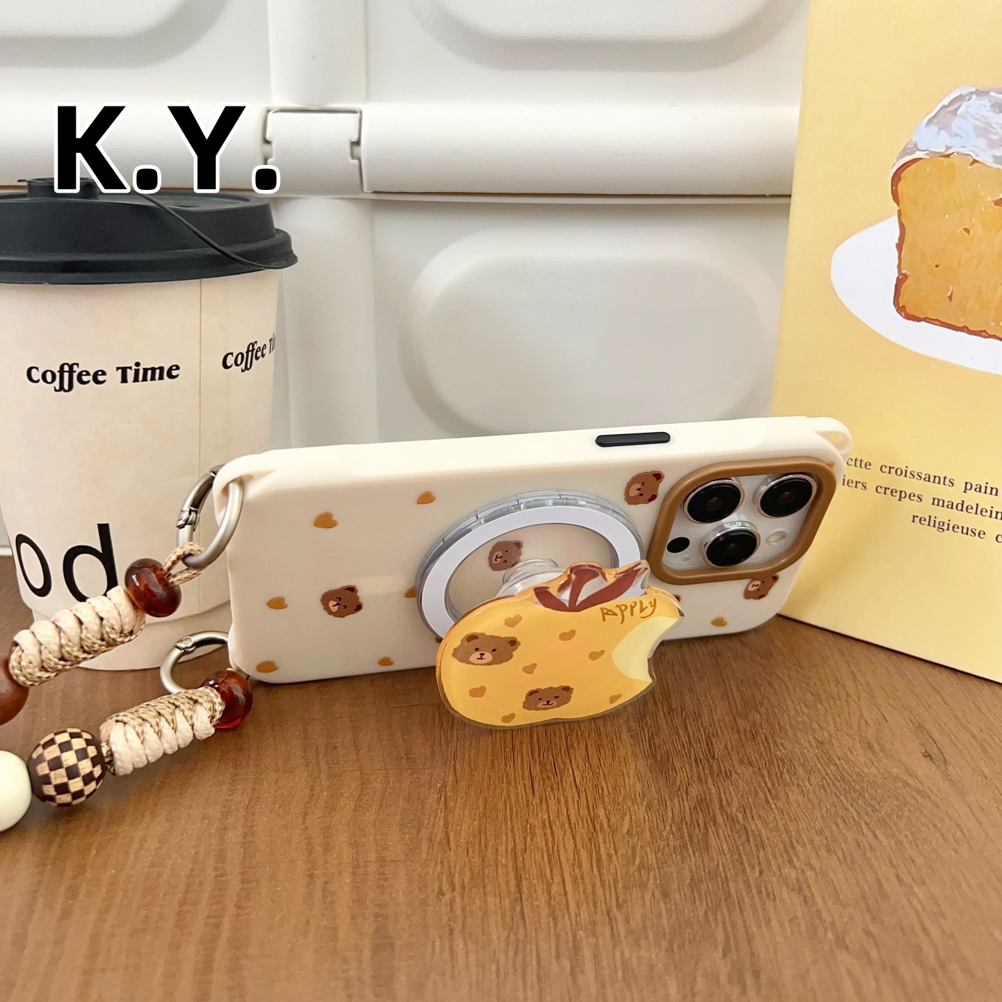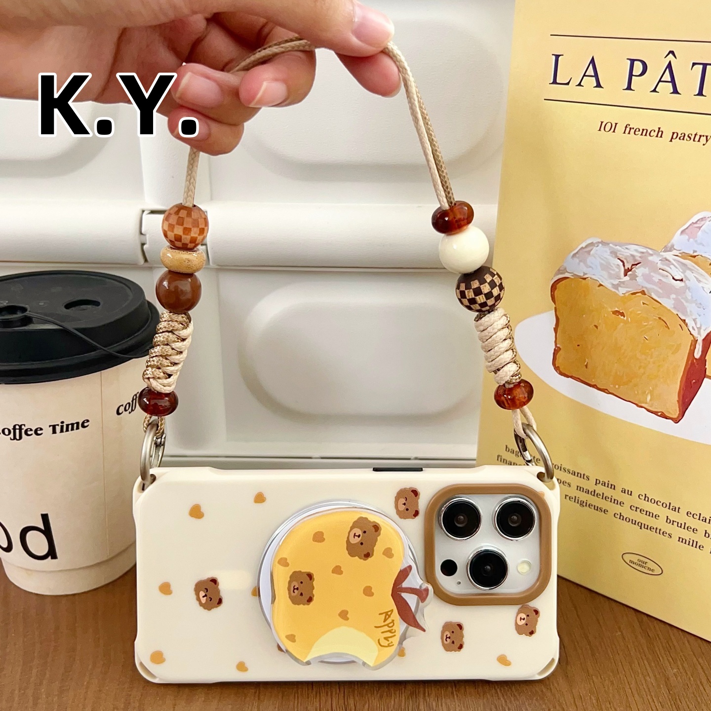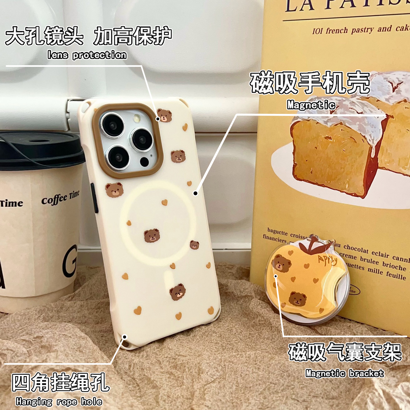 满屏小熊爱心磁吸支架手机壳带挂绳适用于苹果15/16PRO华为mate60/70手腕斜挎四角开孔vivo200防摔小米14/15