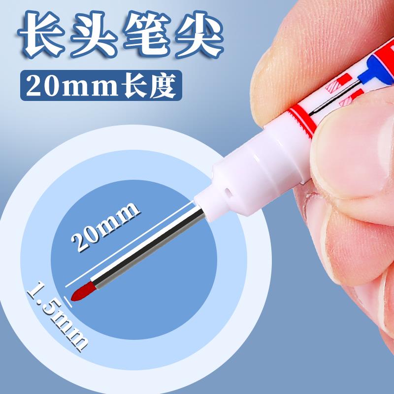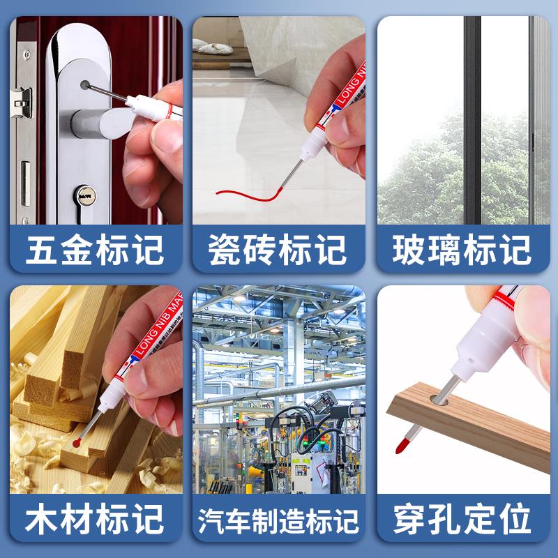 长头记号笔可加墨油性防水防油不掉色加长深孔瓷砖木工标记专用笔