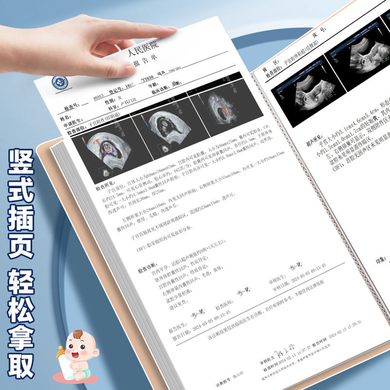 得力孕检收纳册孕妇产检报告单60页40页孕期资料收纳袋装b超医院检查单病例档案册a4文件夹蛇宝宝怀孕记录册