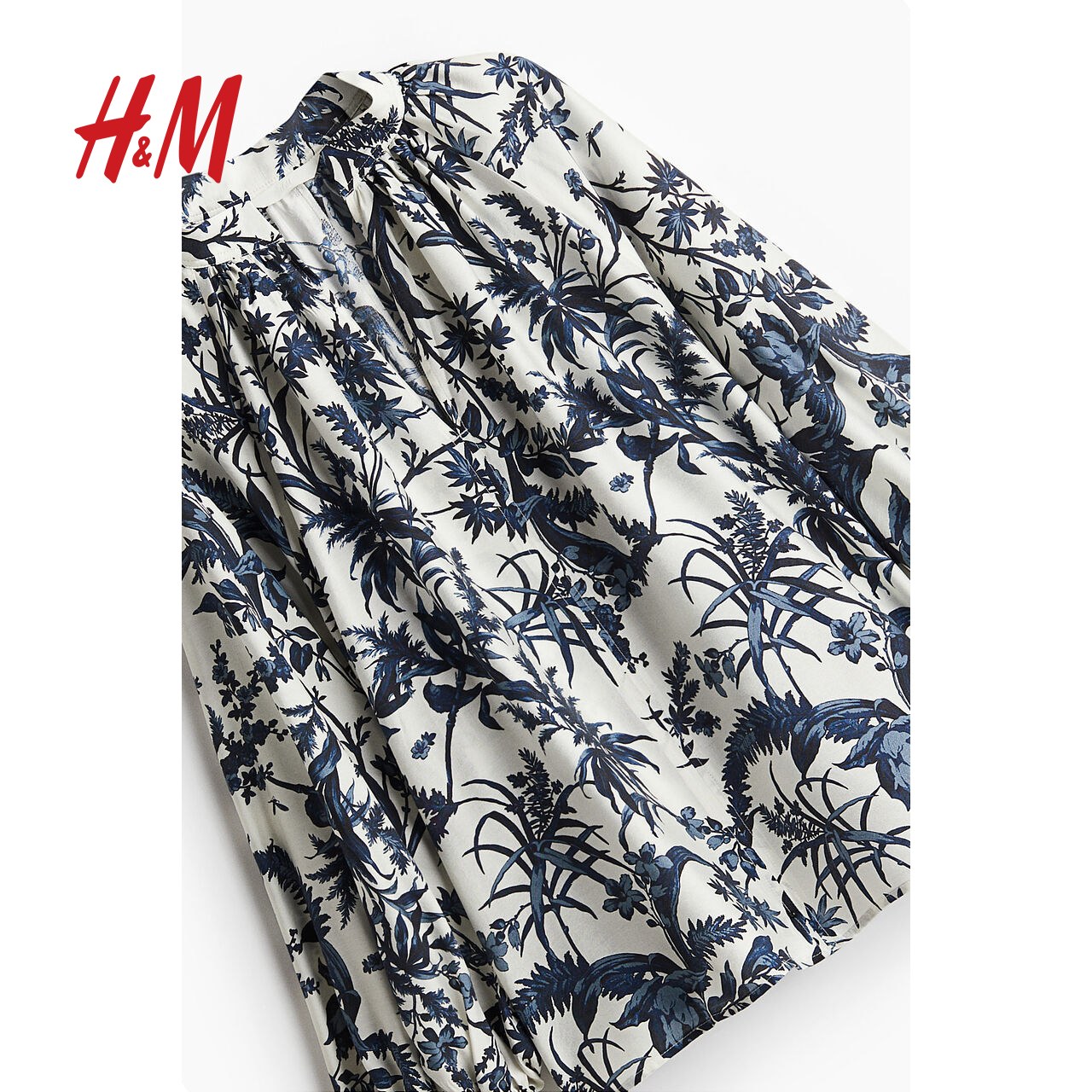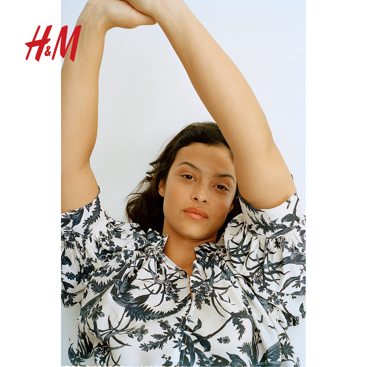 HM女装衬衫秋季条纹V领灯笼袖大廓形法式气质长袖上衣1258814