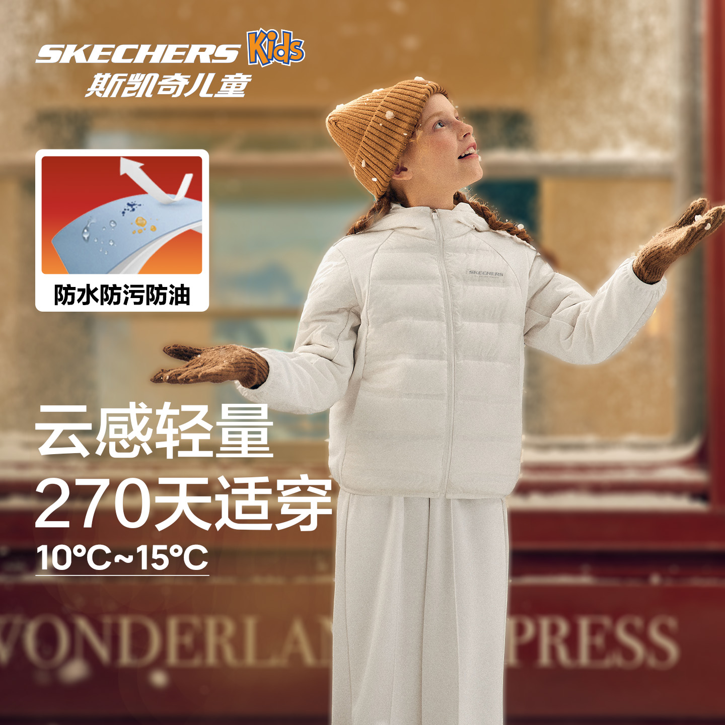 Skechers斯凯奇儿童连帽羽绒外套冬季男女童三防保暖轻薄羽绒服