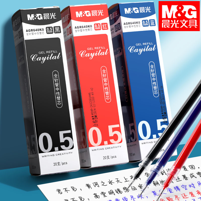 晨光笔芯中性笔芯黑色0.5mm全针管头笔心刷题签字笔替换芯0.5比顺滑好用学生用办公用品批AGR640K0碳素黑考试