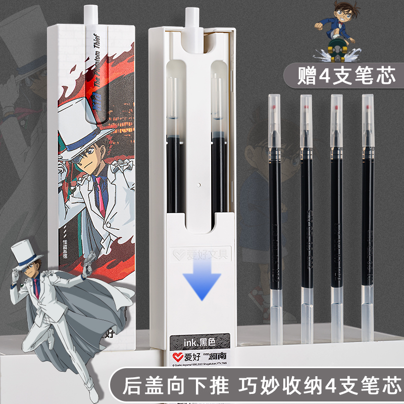 爱好名侦探柯南IP联名限定笔按动中性笔黑色拼图笔高颜值学生用刷题笔中学生水性笔怪盗基德0.5mm碳素笔