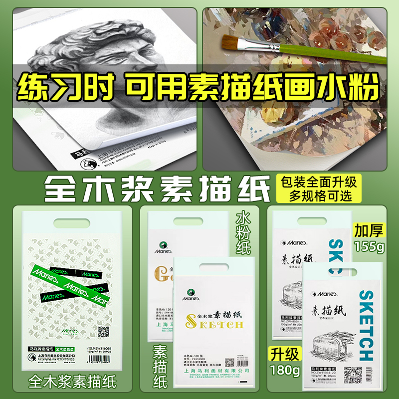 马利8K素描纸美术生专用4K水粉纸四开画纸八开速写纸8开儿童绘画纸4开铅画纸加厚涂鸦色彩美术考试素写纸