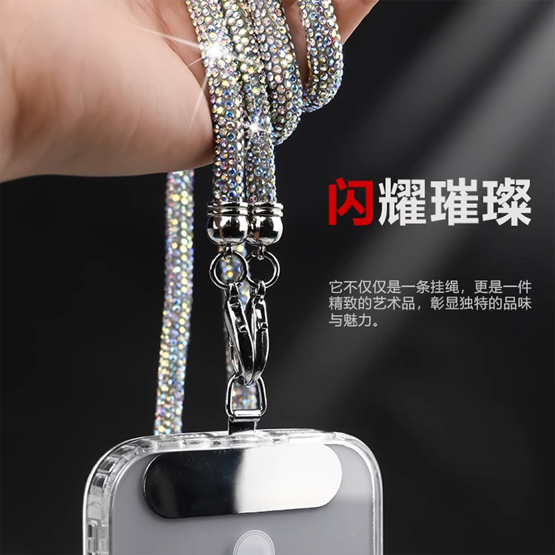 手机挂绳短款手腕款加粗水钻挂链挂件高级感女神闪钻奢华满钻挂饰新长款斜挎挂脖吊绳带金属夹片结实吊坠