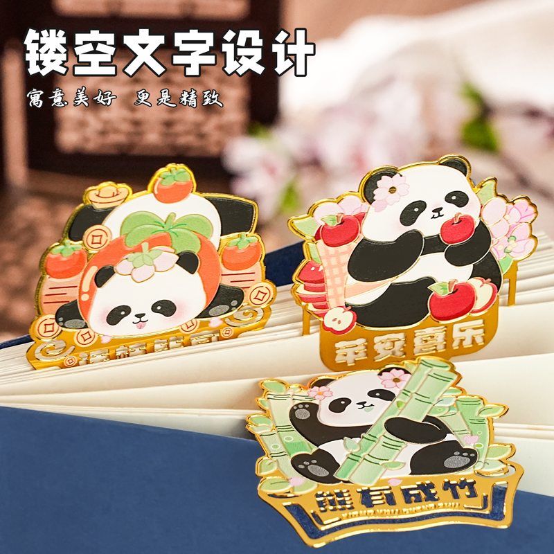 熊猫书签古典中国风黄铜金属书签故宫文创纪念品高档精致小学生奖励礼品送老师创意礼物古风文具公司年会定制