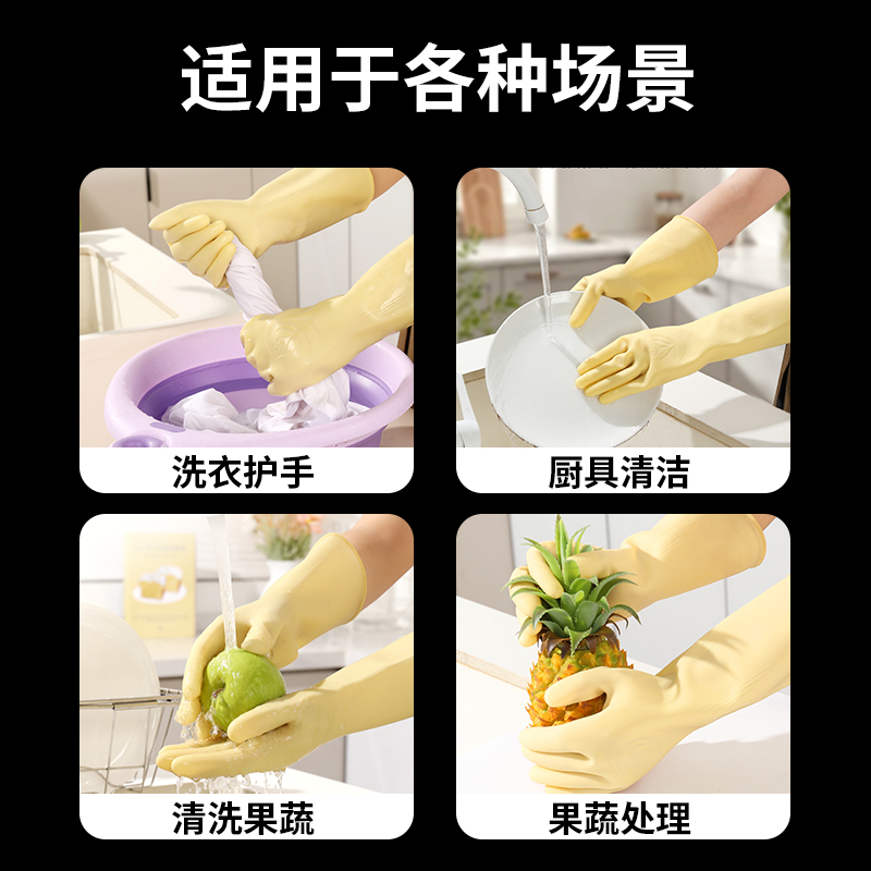 加厚橡胶牛筋乳胶手套家务女手套洗碗清洁家用干活洗衣服乳胶耐磨