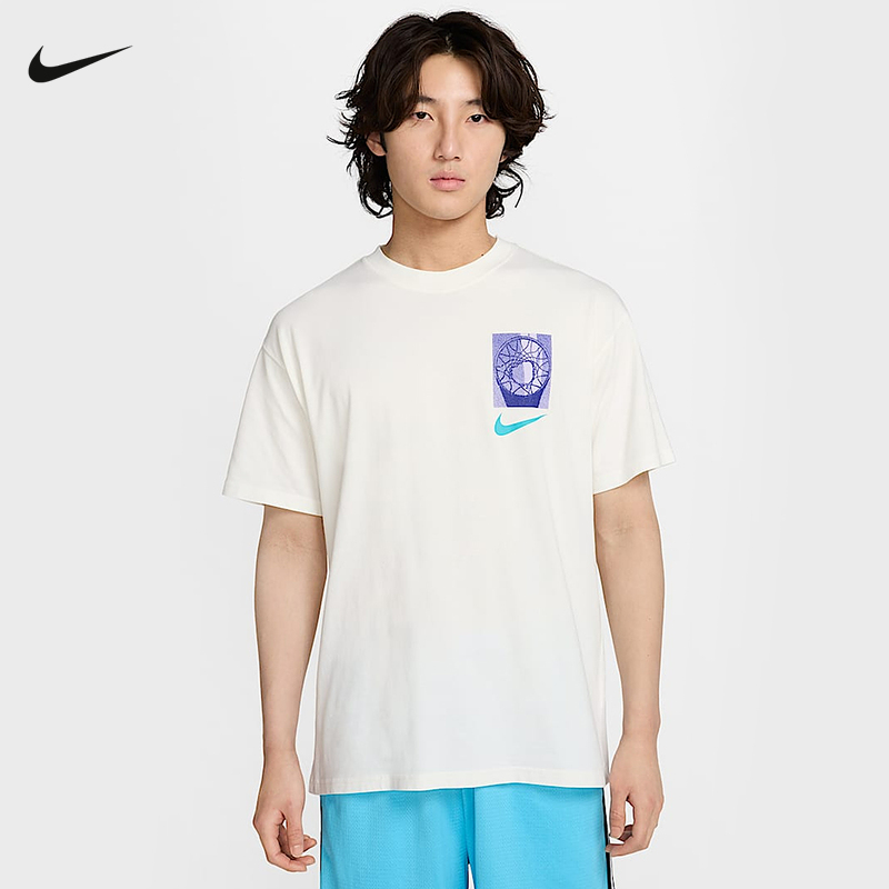 Nike耐克短袖男上衣夏季宽松休闲背后图案印花篮球T恤HJ3326-133