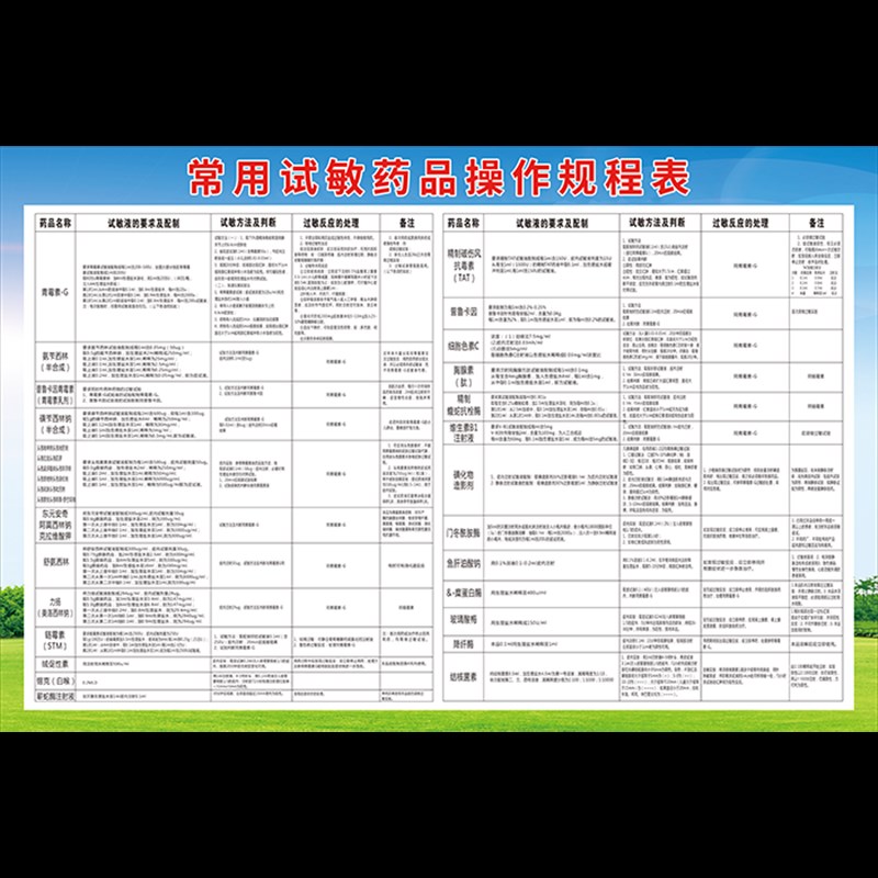 速发常用试敏操作规程配伍表皮试液配置45可PP背胶贴纸海报