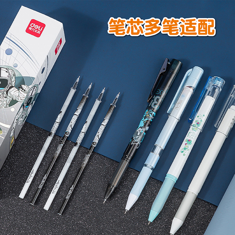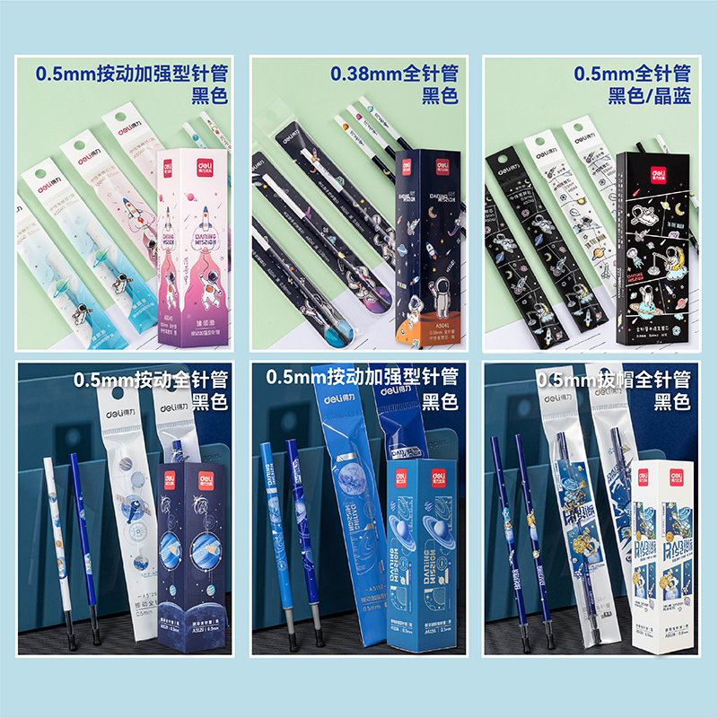 得力问苍穹系列中性笔替芯航天主题笔芯0.5mm全针管黑色蓝色0.38mm按动笔芯学生考试笔芯办公书写水笔笔芯